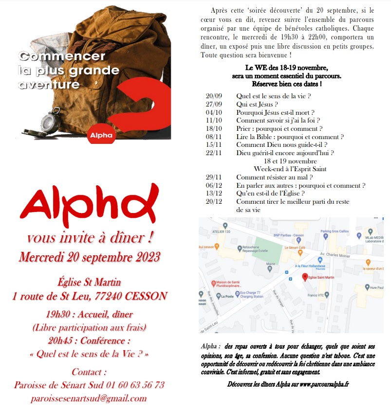 Un nouveau parcours alpha va démarrer le 20 septembre à partir de 19h30 à l’église de Cesson